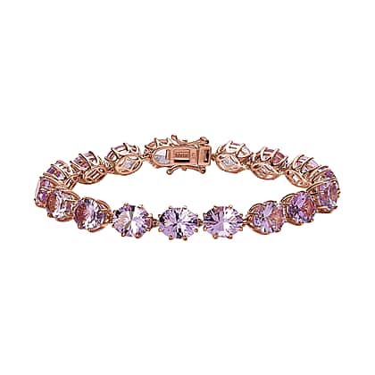 Ultimate Rose De France Amethyst Bracelet (Size - 7) in 18K Rose Gold Vermeil Plated Sterling Silver 28.98 Ct, Silver Wt 11.76 Gms