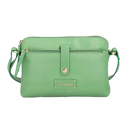 UNION CODE Super Soft 100% Genuine Leather Multi Pocket Crossbody Sling Bag with Zipper Closure (Size 25.5x3x18 Cm) - Green