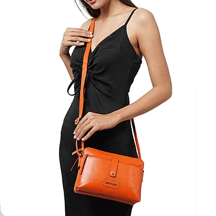 100% Genuine Leather Multi Pocket Crossbody Sling Bag Size 25.5x3x18 Cm Orange