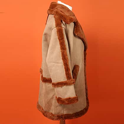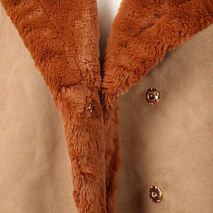 Urban Mist Faux Fur Suede Shearling Soft Fleece Lined Collar Coat with Pockets - Beige