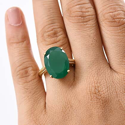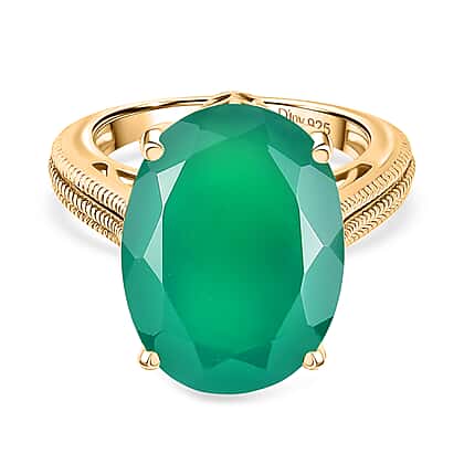 Verde Onyx Solitaire Ring in Yellow Gold Plating Sterling Silver 9.51 Ct.