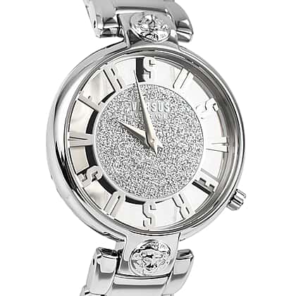 The VERSUS by Versace Kirstenhof analogue ladies watch is a dazzling blend of elegance and functionality designed for women who appreciate fashion and precision. This exquisite timepiece features a pave glitter dial that catches the eye, housed within a sleek 36mm stainless steel case. Its durable stainless steel strap has a deployant closure for a secure and stylish fit. Perfect for daily wear or special occasions, it combines the reliability of quartz movement with the allure of Versace's iconic design.