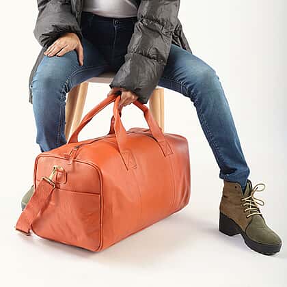 Experience the epitome of sophistication and practicality with our 100% genuine leather luggage duffle bag. Meticulously crafted for the modern traveller, this duffle bag combines a classic, attractive appearance with enduring quality. The luxurious leather exterior is complemented by a durable polyester lining, ensuring style and longevity. With its spacious design, it effortlessly accommodates all your travel essentials. The bag features a comfortable handle and an adjustable, detachable strap for versatile carrying options, making it an ideal companion for your journeys.