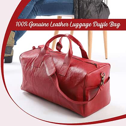 Vicenza CloseOut - 100% Genuine Leather Luggage Duffle Bag - Red