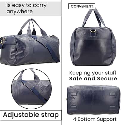 Vicenza CloseOut 100% Genuine Leather Luggage Duffle Bag - Navy
