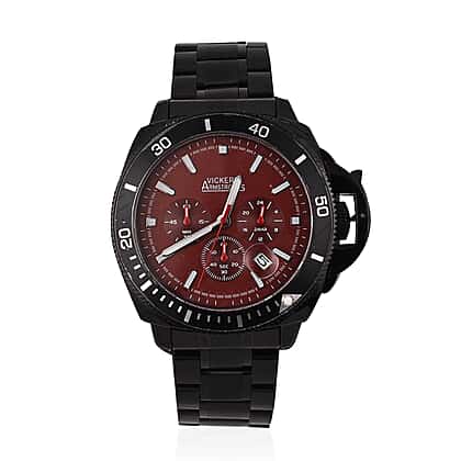 VICKERS ARMSTRONGS Hand Assembled Geosphere Chronograph Movement Red Dial Water Resistant Watch with Black Colour Chain Strap