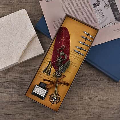 Vintage Carving Feather Pen Gift Box - Red, Black & Gold