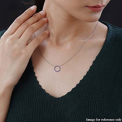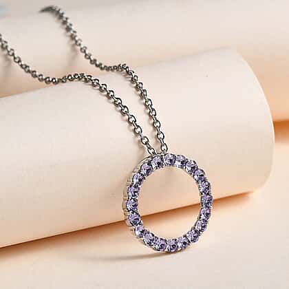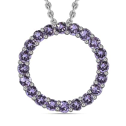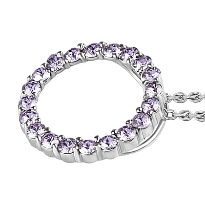 Violet Finest Austrian Crystal Circle Pendant in Platinum Overlay Sterling Silver