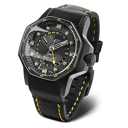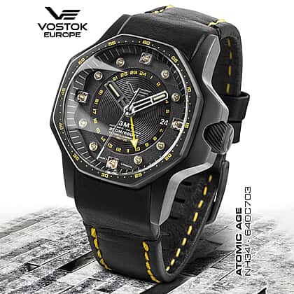 VOSTOK EUROPE Automatic Movt. Atomic Age Black PVD 20ATM WR Mens Watch with Genuine Leather Strap