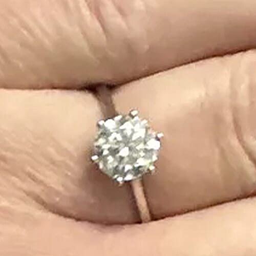 Solitaire ring, beautiful sparkle. Definitely a keeper. Love it. Moissanite is underrated. So much more affordable. |