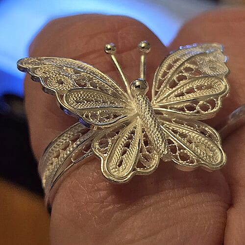 This is a gorgeous statement piece, the details filigree work on both the butterfly and on the band is amazing and delicate but at the same time quite robust! |
