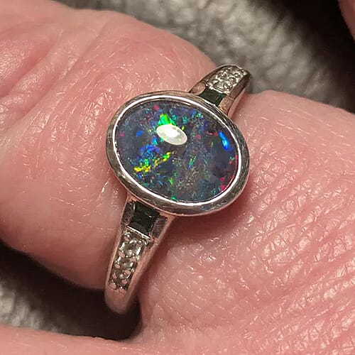 Absolutely beautiful just the right size and beautiful rainbow in the opal, the colours are stunning and the opal is so smooth, comfortable fit. I have always wanted an opal like this since I saw my Aunt's and this is so similar. The package it arrived in was great. The ring was well protected . Well done TJC |