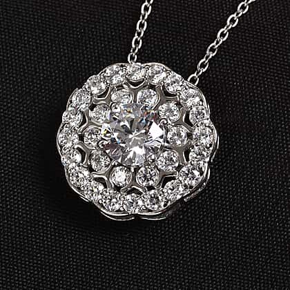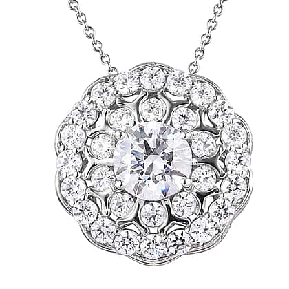 6.81 Ct. Lustre Stella Platinum Plated Sterling Silver Floral Pendant with Chain