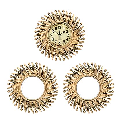- THREE PIECE SET - Give your room's wall an elegant makeover with the wall clock and mirrors offered in same them.