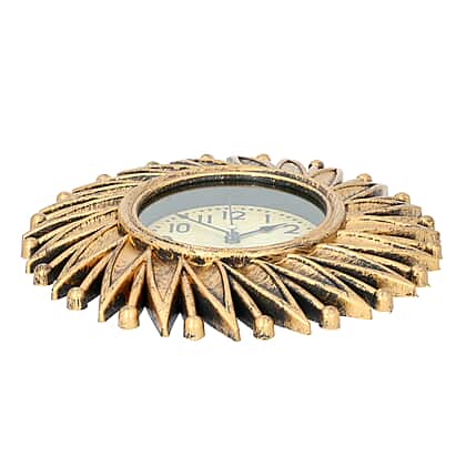3 Piece Set - Golden Flower Wall Clock with Mirrors (Size 26x26cm/Pcs)