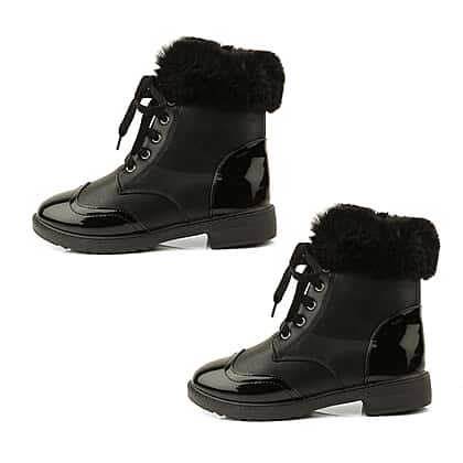 Warm Faux Fur Ankle Boots - Black