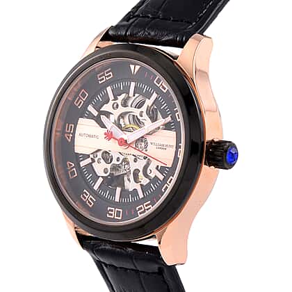 WILLIAM HUNT 5 ATM Water Resistant Automatic Movt. Watch in Rose Gold Tone with Black Leather Strap