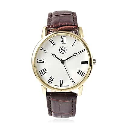STRADA Japanese Movement Water Resistant Watch with Gold Tone Case and Brown Colour Strap