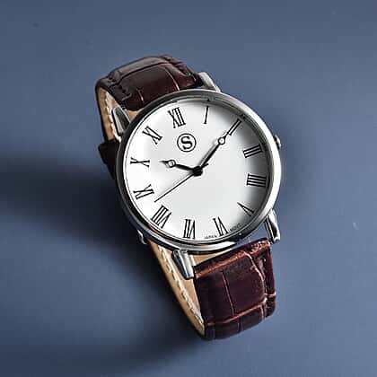 This water-resistant watch from the collection of Strada will be your everyday partner. The minimalistic Roman numeral creates a timeless and simplest appearance. Made from corrosion-resistant stainless steel metal with a water-resistant construction to help maintain the new-like finish of this timepiece for ages. Secure with a textured faux leather strap with a buckle closure to let you personalise the fit conveniently.