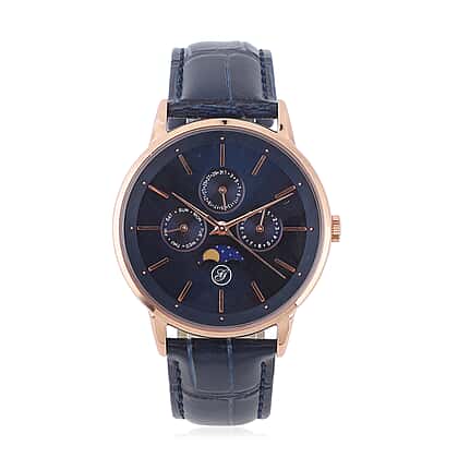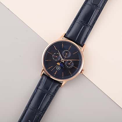 GENOA Japanese Movement Navy Blue Dial 5 ATM Water Resistant Watch with Navy Blue Leather Strap in Stainless Steel