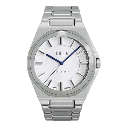 Introducing the Dufa Wachsmann Ladies Watch, a stylish timepiece that blends 70s-inspired design with modern craftsmanship. This watch features a striking contemporary white dial complemented by a clean and elegant design. Powered by a hybrid 'Meca-Quartz' TMI 3-Hand movement, it ensures precise timekeeping while maintaining a sleek profile. The stainless-steel case is durable and sophisticated, making it perfect for everyday wear. Its sapphire lens provides excellent scratch resistance, while the stainless-steel bracelet adds a touch of refinement. With water resistance up to 5 ATM, this watch is suitable for daily activities and light water exposure.