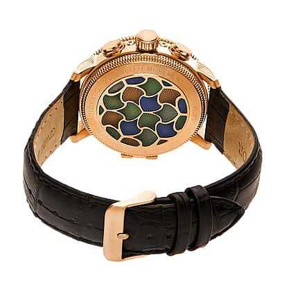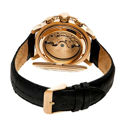 Aura Collection Heritor Automatic Movt. Gold Bezel 5 ATM Water Resistant Watch with Black Genuine Leather Strap
