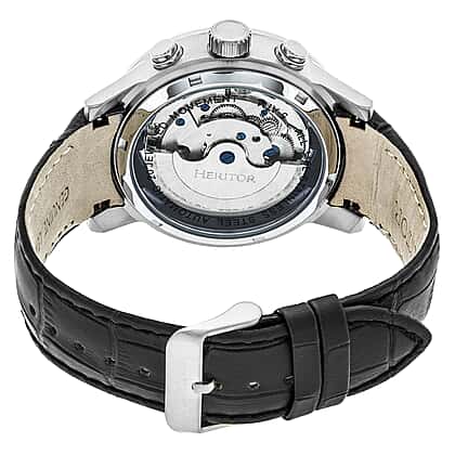 Experience the harmony of precision and style with the Heritor Hannibal watch in silver tone. The semi-skeleton dial offers a fascinating peek into the watch’s heartbeat, complemented by a robust black leather strap that adds a touch of sophistication. This watch is designed for the modern professional who appreciates the allure of mechanics paired with enduring style. The automatic movement ensures you are always on time, making it a perfect blend of form and function.