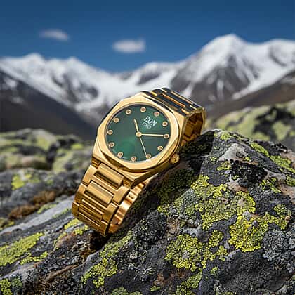 Back by Demand - EON 1962 Swiss Movt.12 Natural Champagne Diamond 5ATM WR Stainless Steel Watch- Gold Green