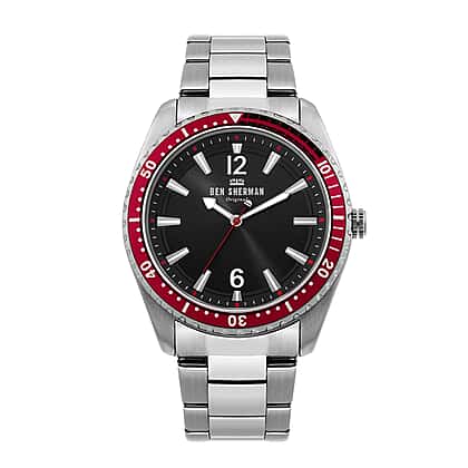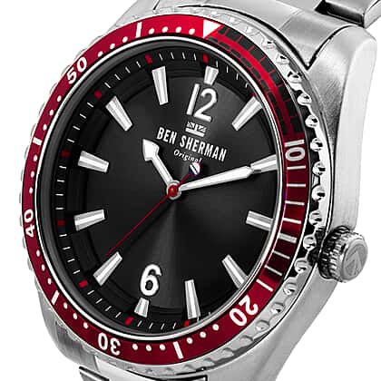 Ben Sherman Men's Black Dial with Red Bezel Case Watch