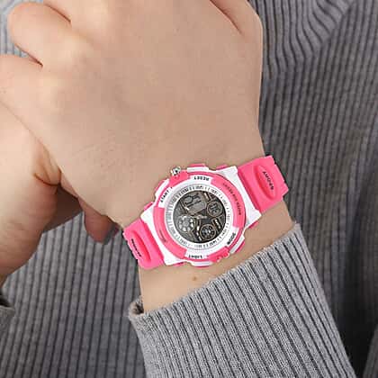 This multi-functional plastic watch is a durable and stylish accessory that matches your everyday outfits. With accurate Japanese and electronic movement, the watch features a digital display in addition to the watch’s hands. The two-shade plastic case and TPU bracelet make it durable and fit for daily wear. It can also be used as a stopwatch, alarm clock, or night light.