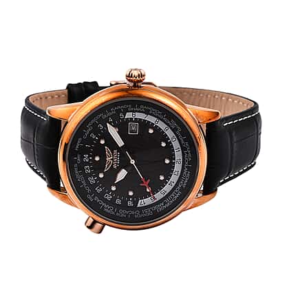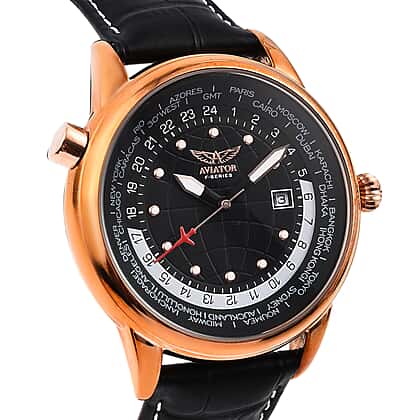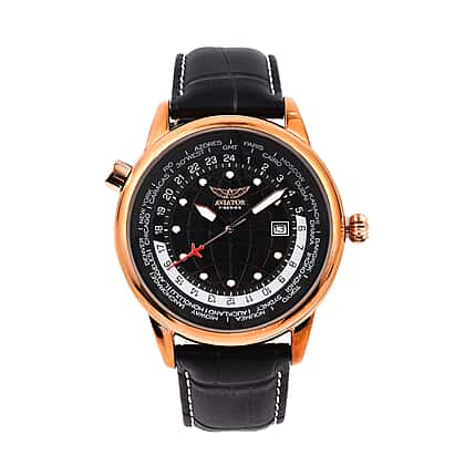 Closeout Deal - Aviator Mens Black Dial Watch with Black Leather Strap