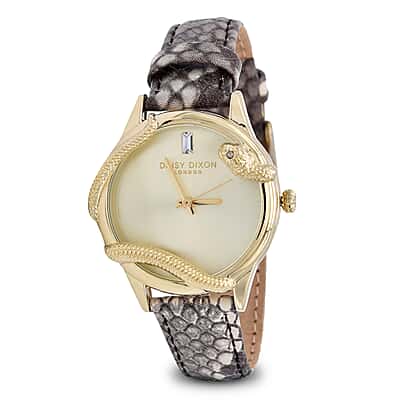 This eye-catching snake pattern timepiece from the collection of Daisy Dixon is perfect for a special occasion. The gold-toned case with a white dial gives a contrasting appeal to this women's watch. Backed by an automatic movement to deliver accurate time with great precision. The case is made from stainless steel metal to help the new-like finish of this timepiece for ages.
