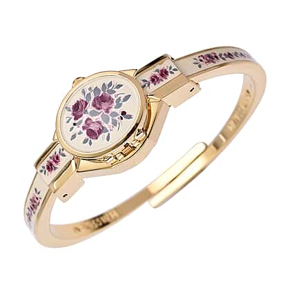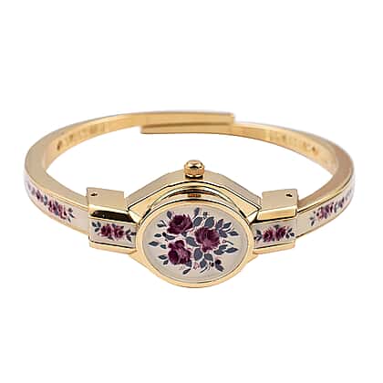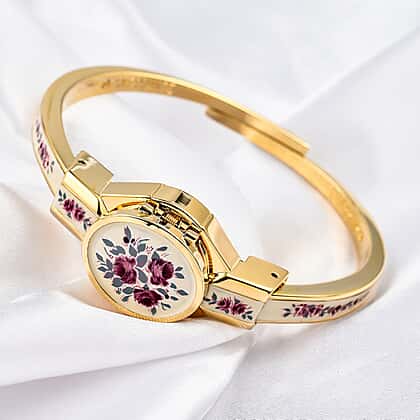 DOD- Andre Mouche -Swiss Ronda Movement Red Floral Pattern Ladies Bangle Watch (Size 6 - 6.5)
