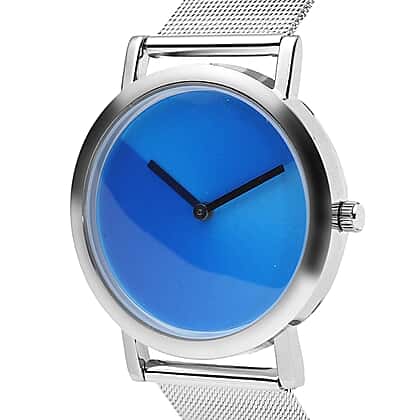 A minimalist timepiece with a unique way of telling time. Two coloured films are included as hour and minute hands. Hour and minute hands are crossed by a gradient colour change in these displays. As a result, the whole design emphasises the present time and the modernistic simple dial. The mesh strap in a timeless style has a timeless charm. The contrast between the vibrant coloured dial and the stainless steel is striking. Water resistance of up to 3 ATM protects the watch mechanism from water splashes. It has a Japanese movement that assures extremely accurate timing.