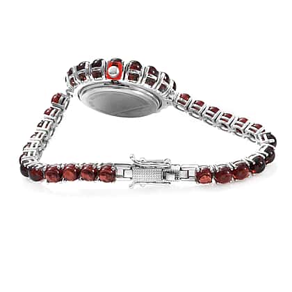 EON 1962 Mozambique Garnet (25.25 Ct) Bracelet Watch (Size 7) in Platinum Overlay Sterling Silver, Silver wt 19.00 Gms