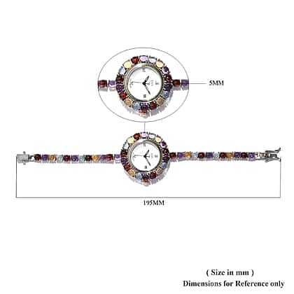 EON 1962 Multi Gemstone (25.00 Ct) Bracelet Watch (Size 7) in Platinum Overlay Sterling Silver, Silver wt 19.00 Gms