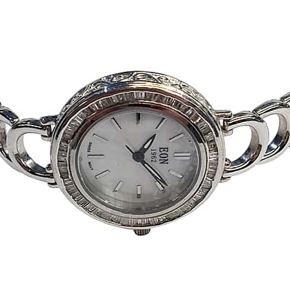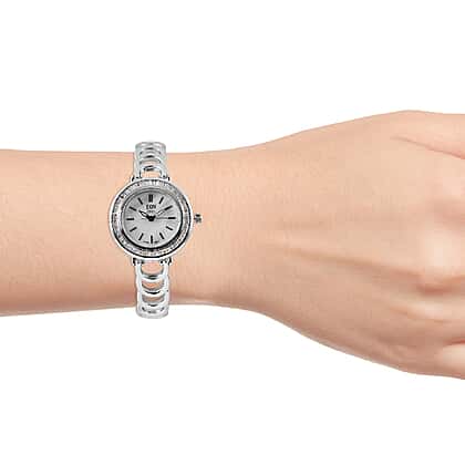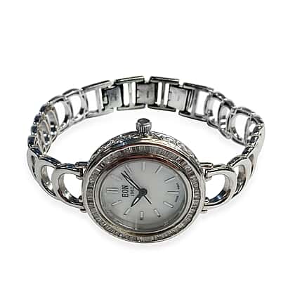EON 1962 Swiss Movement Diamond Adorned Watch (Size 7 with 1 inch Extender) in Platinum Overlay with Black Plating Sterling Silver 0.75 Ct, Silver wt 23.00 Gms