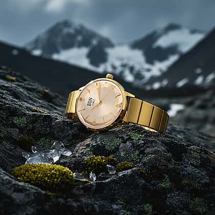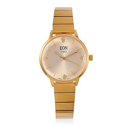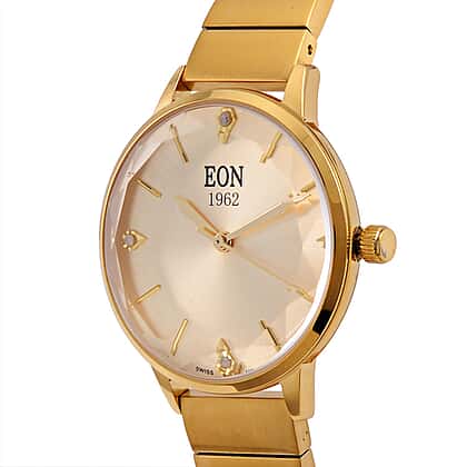 LIMITED EDITION - EON SWISS Movement Natural Diamonds 5 ATM Watch in Stainless Steel Strap - Gold