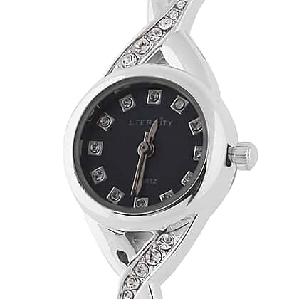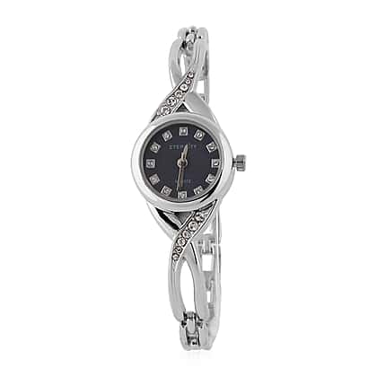 ETERNITY Studded Ladies Bracelet Watch with Blue Dial in Silver Tone