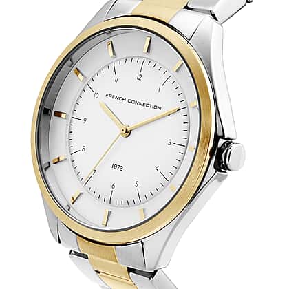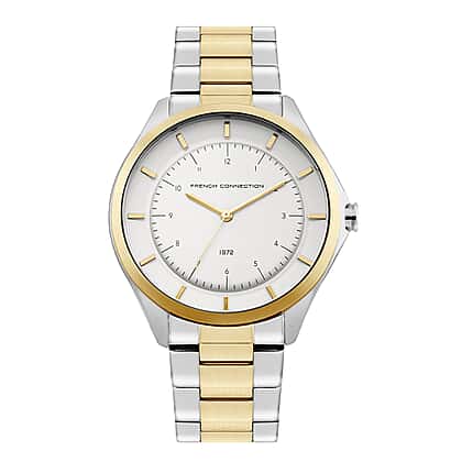 French Connection Silver Dial Mens Watch With Silver & Gold Colour Chain Strap