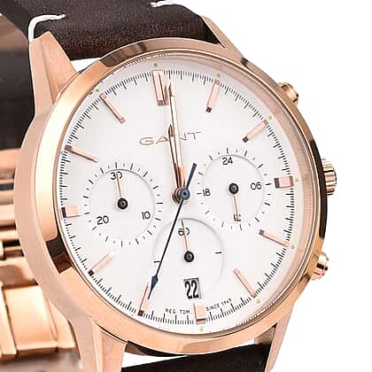 GANT BRADFORD Rose Gold Dial Water Resistant Watch with Brown Leather Strap