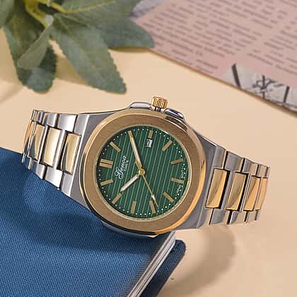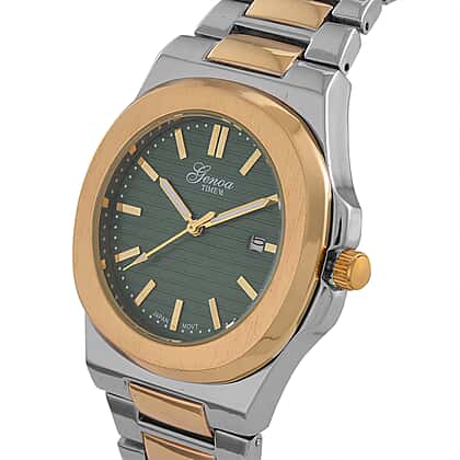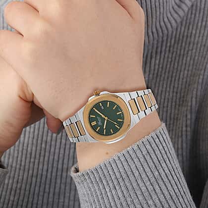 GENOA Japan Movt. 3ATM Water Resistant Green Dial Watch with Stainless Steel Chain Strap in Dual Tone