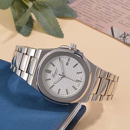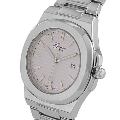 GENOA Japan Movt. 3ATM Water Resistant White Dial Watch with Stainless Steel Chain Strap in Silver Tone