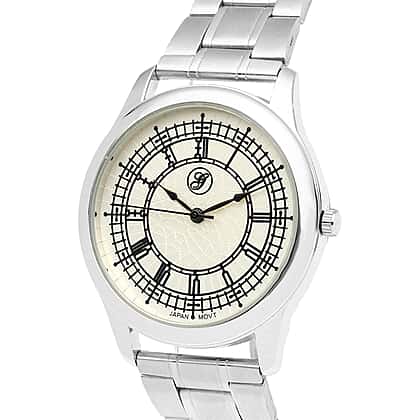 GENOA Japan Movement White Dial Water Resistant Watch with Stainless Steel Strap
