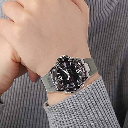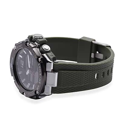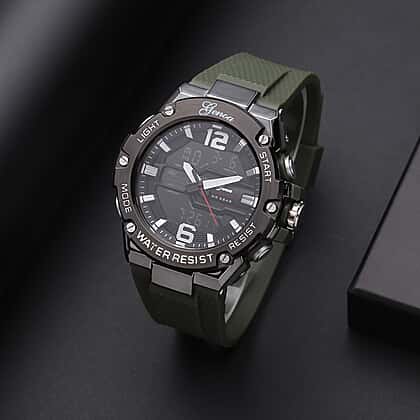GENOA Japanese and Electronic Movement 5 ATM Water Resistant Watch with Stainless Steel Back and Green TPU Strap - Black