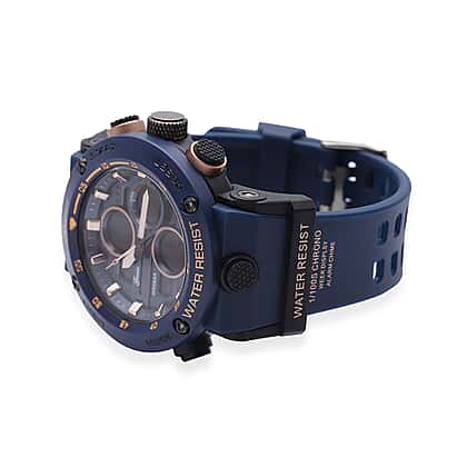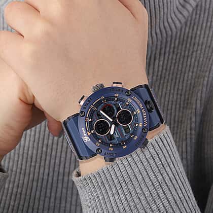 GENOA Japanese and Electronic Movement 5 ATM Water Resistant Watch with Stainless Steel Back and Navy Blue TPU Strap - Black