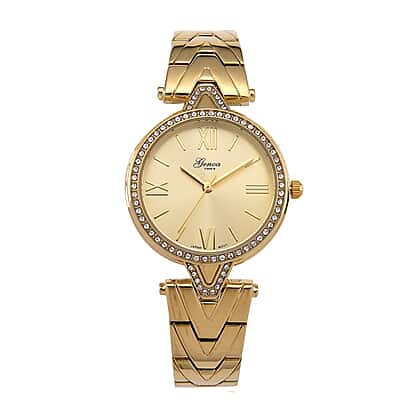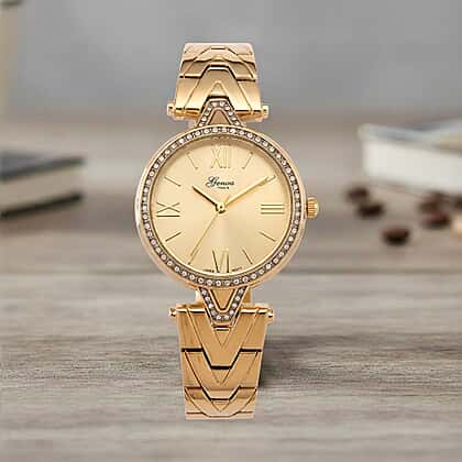 GENOA TIME LIMITED EDITION Japanese Movt. 3ATM Water Resistant Sunray Dial Ladies Watch with Gold Colour Strap & Case with Austrian White Crystal Accents