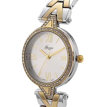 GENOA TIME LIMITED EDITION Japanese Movt. 3ATM Water Resistant Sunray Dial Ladies Watch with Silver and Gold Colour Strap & Case with Austrian White Crystal Accents