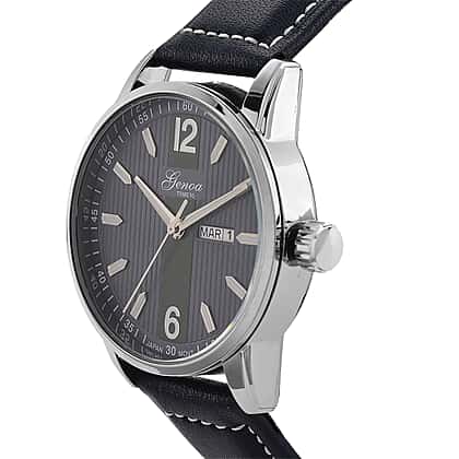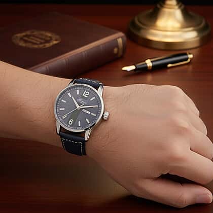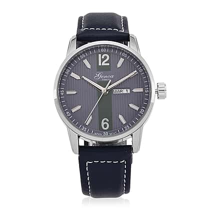 GENOA TIME V2 Double Date Quartz PC33 3ATM WR Blue Hydraulic Dial & Silver Case Mens Watch with Blue Leather Strap