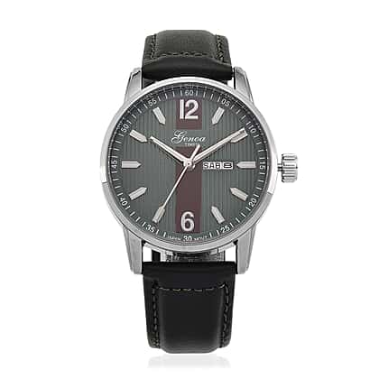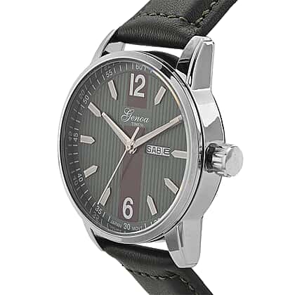 GENOA TIME V2 Double Date Quartz PC33 3ATM WR Green Hydraulic Dial & Silver Case Mens Watch with Green Leather Strap